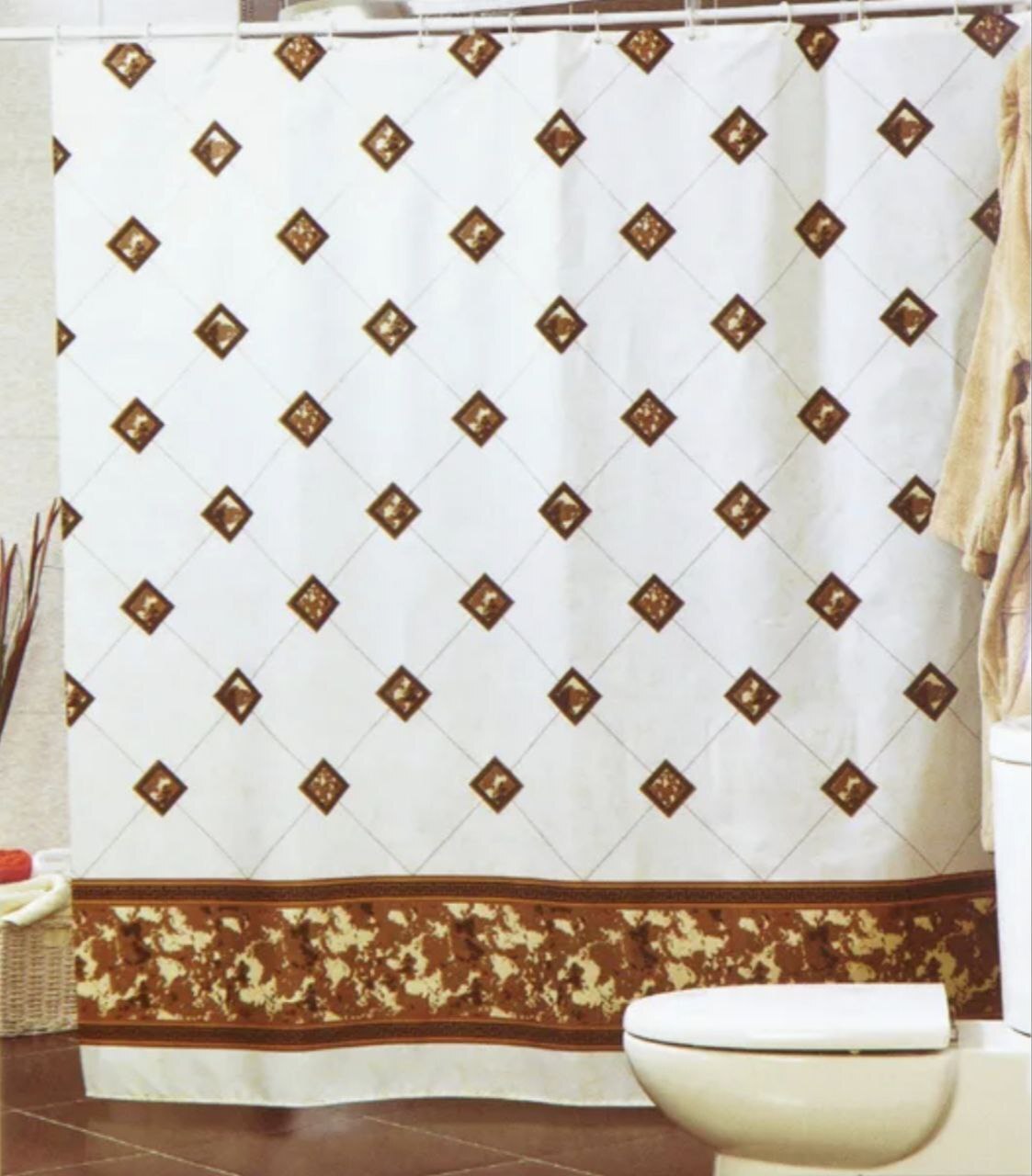 Шторы для ванной Миранда, изготовлены полиэстра, обладают высокой прочностью и водоотталкивающими свойствами. Не мнутся, устойчивы к перепадам температур