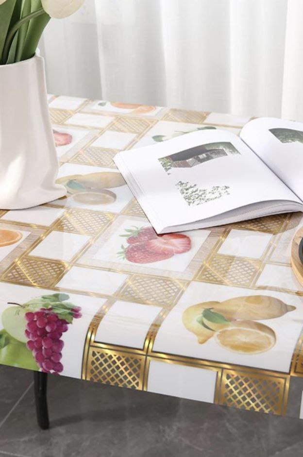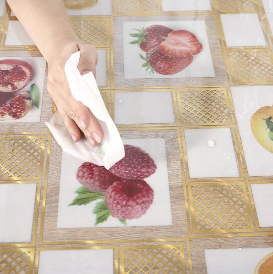 100% ПВХ без основы с тисненым рисунком, плотно прилегает и защищает поверхность стола